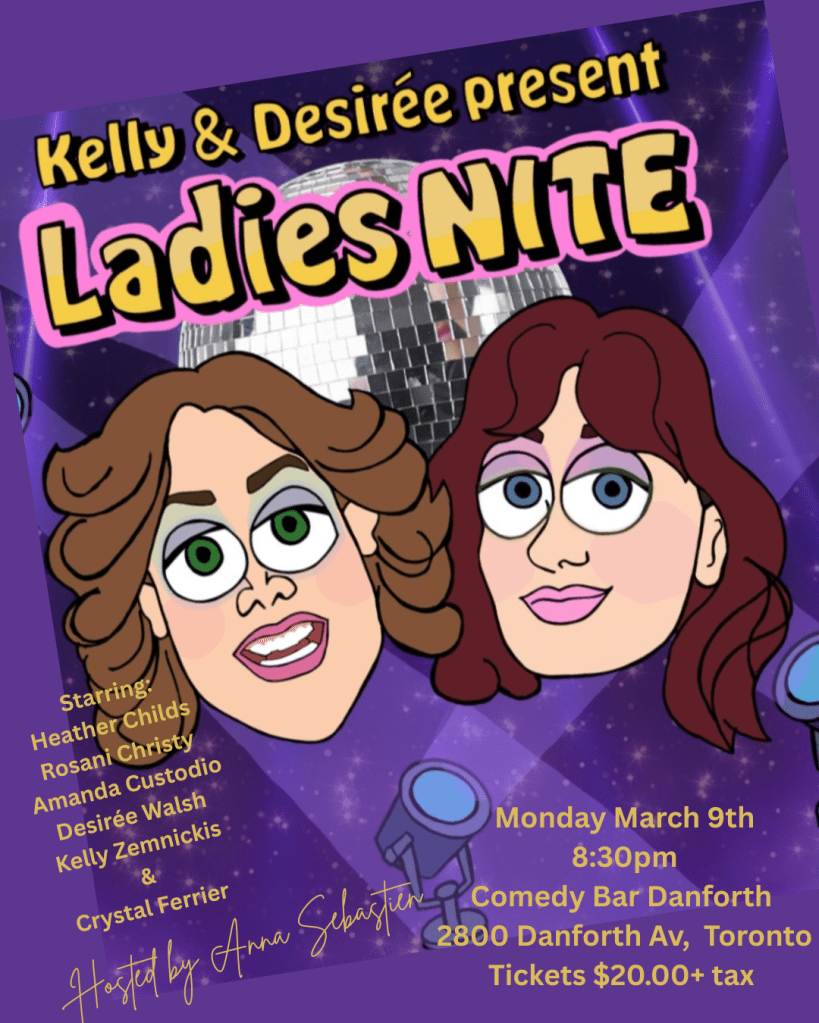 Desiree Walsh & Kelly Zemnickis bring you another Ladies Nite at the FULLY accessible Comedy Bar Danforth! Because telling jokes in accessible spaces is cool.